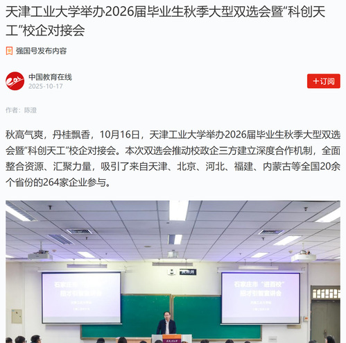 学习强国丨天津工业大学举办2026届毕业生秋季大型双选会暨“科创天工”校企对接会