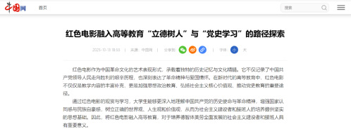 红色电影融入高等教育立德树人与党史学习是一个长期而复杂的过程,需要学校、教师、学生和社会各方面的共同努力和配合,更好地发挥红色电影在高等教育立德树人与党史学习中的独特作用和价值。未来,随着红色电影资源的不断丰富和技术的不断发展,我们可以进一步拓展红色电影在高等教育中的应用范围和深度,为培养德智体美劳全面发展的社会主义建设者和接班人做出更大的贡献。(天津工业大学 郝希超,王宏)