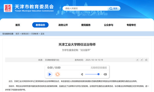 近日,天津工业大学纺织科学与工程学院举办法治导师聘任仪式,来自宝坻区人民检察院的检察官助理孙艺傲和西青区学苑派出所民警陈应康受聘为首的法治导师。