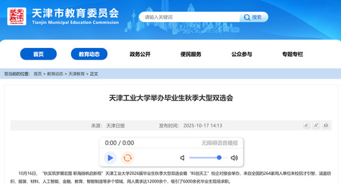 10月16日,“秋实筑梦展宏图 职海扬帆启新程”天津工业大学2026届毕业生秋季大型双选会暨“科创天工”校企对接会举办,来自全国的264家用人单位来校招才引智,涵盖纺织、服装、材料、人工智能、金融、教育、智能制造等多个领域,用人需求达12000余个,吸引了6000余名毕业生现场求职。