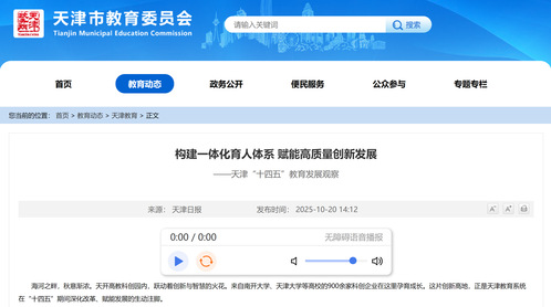 “十四五”以来,天津教育系统紧紧围绕立德树人根本任务,以高质量发展为主线,深化教育综合改革,构建德智体美劳全面培养的教育体系,为城市能级跃升和经济社会发展提供了坚实的人才支撑和智力保障。