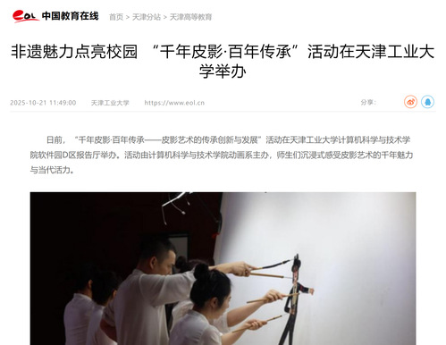 非遗魅力点亮校园 “千年皮影·百年传承”活动在天津工业大学举办
