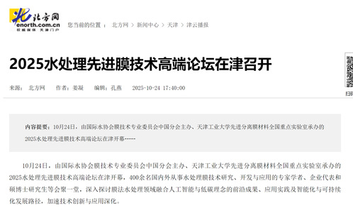 北方网丨2025水处理先进膜技术高端论坛在津召开