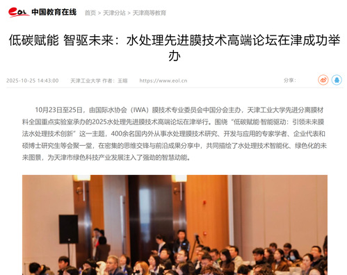 论坛汇聚的顶尖智慧,也在深度赋能天津的产业发展战略。膜技术作为新材料与节能环保的战略性交叉领域,其智能化、低碳化发展方向,与天津持续推进“人工智能+”行动的战略定位高度契合。一位参会企业代表感慨:“论坛让我们精准把握了技术脉搏,也让我们对在天津这片沃土之上壮大膜技术产业充满了信心。”面向未来,天津工业大学将以科技的“硬支撑”驱动区域产业绿色智能化升级,为建设美丽天津、服务国家生态文明建设贡献更大天工力量。