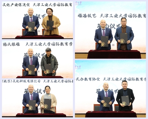 随后,学校中华优秀传统文化与技艺国际传承创新基地与天津市民办教育协会、天津市文化产业促进会、杨氏根雕技艺、玲珑枕制作技艺、河北省级非遗雕漆技艺等项目代表共同签署合作协议,标志着各方在非遗保护传承与文化产业发展等领域开启合作新局面。