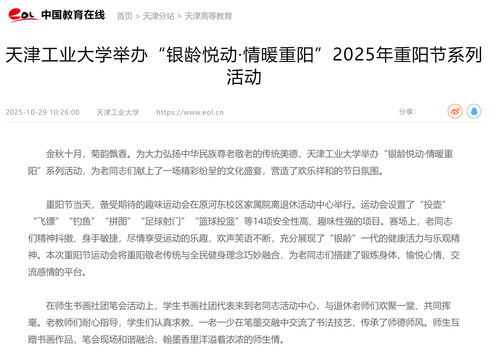 天津工业大学举办“银龄悦动·情暖重阳”2025年重阳节系列活动