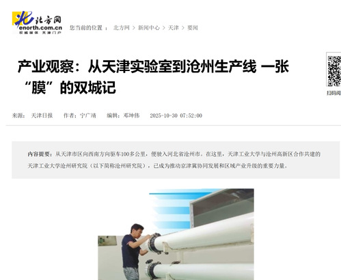 魏俊富表示,京津冀地区在膜技术基础研发方面虽有优势,但许多成果仍困于实验室。沧州研究院打通“从论文到产品”的转化通道,推动不少先进技术孵化落地。