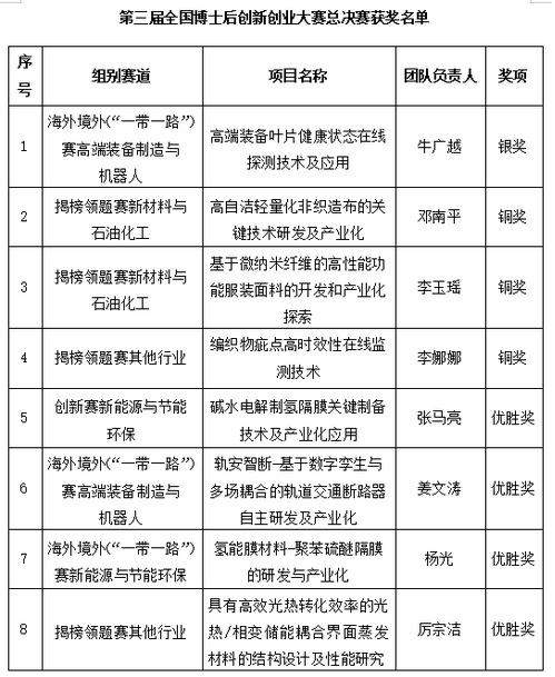 本次大赛是我国规模最大、层次最高、覆盖面最广的博士后赛事,设置了创新赛、创业赛、海外境外(“一带一路”)赛和揭榜领题赛4个组别,各组均分设新一代信息技术与人工智能、高端装备制造与机器人、新能源与节能环保等7大赛道。大赛共吸引8006个博士后项目、3.6万人参赛,最终评选出金奖63个、银奖133个、铜奖198个、优胜奖297个。