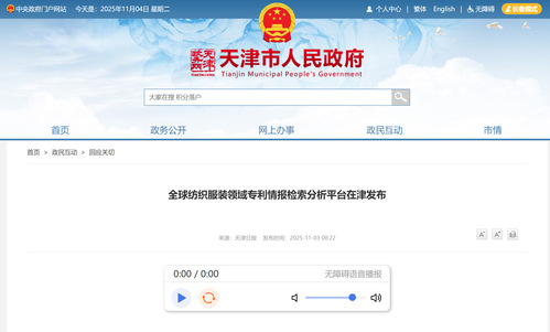 全球纺织服装领域专利情报检索分析平台在津发布 11月2日,从天津工业大学获悉,在该校举办的第二十届全国纺织服装信息研究会馆长论坛暨2025年学术年会上,全球纺织服装领域专利情报检索分析平台正式发布。该平台由天津工业大学与万象云专利大数据平台联合打造,是专门服务于纺织产业的新一代科创数据情报系统。