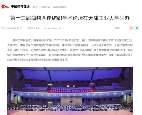 中国教育在线丨第十三届海峡两岸纺织学术论坛在天津工业大学举办