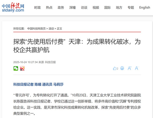 “‘零元许可’,为专利转化打开了通道。”10月23日,天津工业大学工业技术研究院副院长陈磊告诉科技日报记者,学校已通过这一创新举措,将多件高价值和“沉睡”专利授权给企业。这一实践,是天津市深化科技成果转化机制改革,探索“先使用后付费”的众多典型案例之一。
