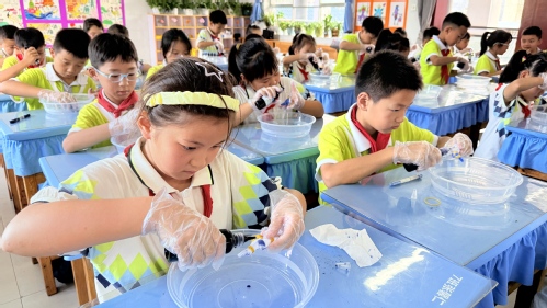 近日,参加第27届研究生支教团的我校纺织学子以专业为基、以情怀为帆,携手我校纺织科学与工程学院“津陇织梦”三下乡实践团将千年扎染技艺带进贵州省铜仁市石阡县第二小学的课堂,以专业力量赋能乡村美育,在基层教育一线架起了一座非遗传承的桥梁,以实干担当诠释了新时代天纺学子的使命与情怀,让扎染这一传统纺织文化在石阡少年心中生根发芽。