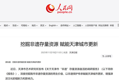 近日,天津市艺术研究所发布《关于天津市“非遗”存量资源盘活的调研报告》(以下简称《报告》),深度挖掘我市非遗存量资源的再生价值,以非遗保护传承赋能天津城市更新,增强津派文化的辐射力和影响力。
