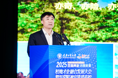 在校地才企融合发展大会上,张玉波代表学校致辞,对莒南县与会嘉宾的到来表示欢迎,并介绍了学校的基本情况。他表示,校地才企融合发展是一体推进教育、科技、人才高质量发展的有力行动,是“教育赋能地方、推动发展新质生产力”的生动实践。希望双方以此次合作签约为契机,进一步整合自身优势和资源,不断推进党建共建、人才引育、政产学研用融合、文化传承创新等领域合作,推动校地双向赋能、双向成就。