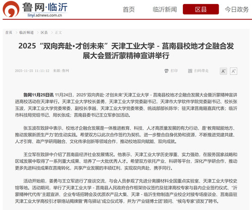 2025“双向奔赴·才创未来”天津工业大学-莒南县校地才企融合发展大会暨沂蒙精神宣讲举行