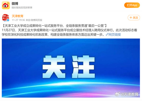 【天津工业大学成立成果转化一站式服务平台,全链条服务贯通“最后一公里”】11月27日,天津工业大学成果转化一站式服务平台成立暨技术经理人聘用仪式举行。此次活动标志着学校在深化科技成果转化机制改革、构建全链条服务体系方面迈出关键一步。