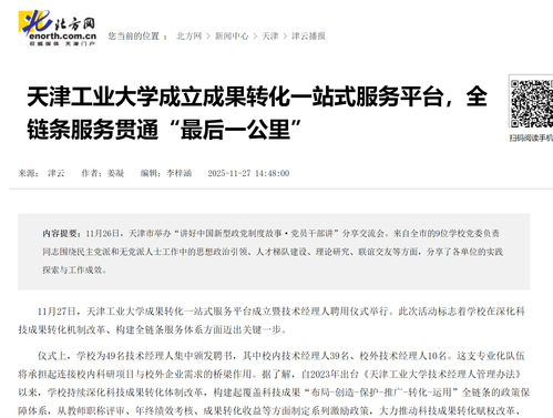 天津工业大学成立成果转化一站式服务平台,全链条服务贯通“最后一公里”