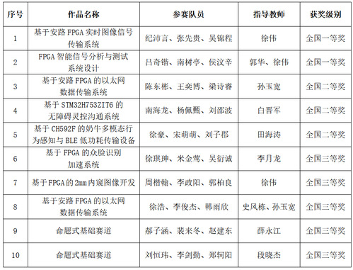 11月30日上午,由中国电子教育学会主办,东南大学和南京江北新区管理委员会共同承办的第八届全国大学生嵌入式芯片与系统设计竞赛芯片设计及FPGA创新设计赛道决赛在南京江北新区闭幕。我校电子与信息工程学院/集成电路学院牵头组织,纺织科学与工程学院、计算机科学与技术学院、控制科学与工程学院、人工智能学院、生命科学学院、物理科学与技术学院和工程教学实习训练中心师生参加了应用赛道和FPGA创新设计赛道。在应用赛道中,获全国二等奖2项;在FPGA创新设计赛道中,获全国一等奖2项、二等奖1项、三等奖5项。