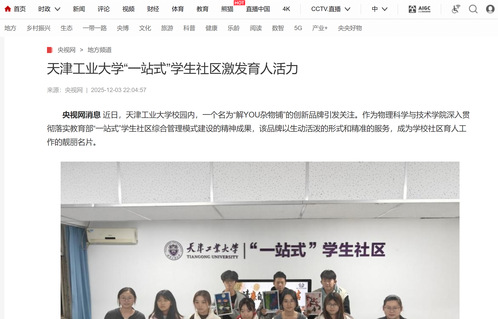 央视网消息 近日,天津工业大学校园内,一个名为“解YOU杂物铺”的创新品牌引发关注。作为物理科学与技术学院深入贯彻落实教育部“一站式”学生社区综合管理模式建设的精神成果,该品牌以生动活泼的形式和精准的服务,成为学校社区育人工作的靓丽名片。