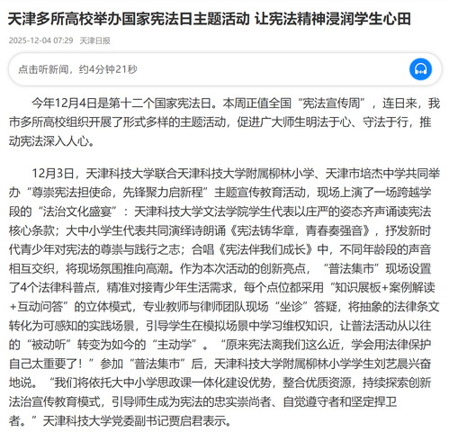 津云丨天津多所高校举办国家宪法日主题活动 让宪法精神浸润学生心田