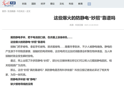最近,网上出现了许多防静电“妙招”,部分社交媒体博主称它们可以帮人们摆脱静电困扰,相关短视频广为流传。
