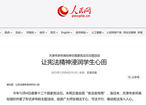 今年12月4日是第十二个国家宪法日。本周正值全国“宪法宣传周”,连日来,天津市多所高校组织开展了形式多样的主题活动,促进广大师生明法于心、守法于行,推动宪法深入人心。