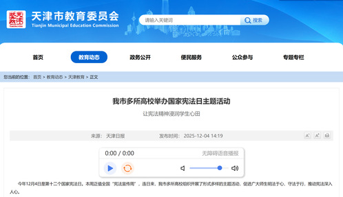 天津科技大学联合天津科技大学附属柳林小学、天津市培杰中学共同举办“尊崇宪法担使命,先锋聚力启新程”主题宣传教育活动。大学生代表齐声诵读宪法核心条款,大中小学生代表共同演绎诗朗诵《宪法铸华章,青春奏强音》,合唱《宪法伴我们成长》,抒发新时代青少年对宪法的尊崇与践行之志。作为本次活动的创新亮点,“普法集市”现场设置4个法律科普点,专业教师与律师团队现场“坐诊”答疑,将抽象的法律条文转化为可感知的实践场景,引导学生在模拟场景中学习维权知识,让普法活动从以往的“被动听”转变为如今的“主动学”。“原来宪法离我们这么近,学会用法律保护自己太重要了!”参加“普法集市”的小学生说。“我们将依托大中小学思政课一体化建设优势,整合优质资源,持续探索创新法治宣传教育模式,引导师生成为宪法的忠实崇尚者、自觉遵守者和坚定捍卫者。”天津科技大学相关负责人表示。