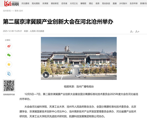 12月5日—7日,第二届京津冀膜产业创新大会暨全国分离膜标准化技术委员会2025年度大会在河北省沧州市举办。