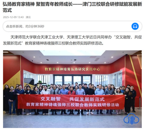 天津师范大学联合天津工业大学、天津理工大学近日共同举办“交叉融智,共促发展新范式”教育家精神铸魂强师三校联合教师实践研修活动。