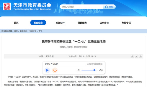 天津市教育委员会网站丨我市多所高校开展纪念“一二•九”运动主题活动 赓续红色薪火 勇担时代使命