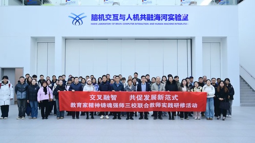 12月3日,我校二十余名青年教师与天津师范大学、天津理工大学同行共同参加“交叉融智,共促发展新范式”教育家精神铸魂强师三校联合实践研修。一行人首先赴脑机交互与人机共融海河实验室交流学习,了解脑机接口、人机共融等前沿技术的科研成果与产业化进展,深切感受产教研融合的创新实践;随后走进天津市教育家精神培育弘扬研究实践中心,系统学习教育家精神的核心要义,在榜样引领中强化师德涵养;圆桌沙龙环节,三校五位优秀专家围绕教学与科研主题分享经验,展开了深入的思想交流与碰撞。