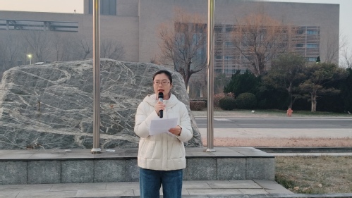 升旗礼毕后,曾华英带领师生结合抗日战争暨世界反法西斯战争胜利80周年、一二·九运动90周年等重大历史节点,深刻解读了在血火中熔铸的伟大抗战精神。她寄语同学们要成为有“根”、有“光”、有“温度”的人;扎根于勤学与思考,将个人成长汇入国家发展长河;踏实发光,认真对待每一堂课、每一次实验,用进步积蓄能量;心怀他人,于细微处传递善意,让校园与社会更温暖。她号召大家将爱国情怀、民族气节、英雄气概和必胜信念化为实际行动,在扎实积累与勇于担当中走好新时代的长征路。