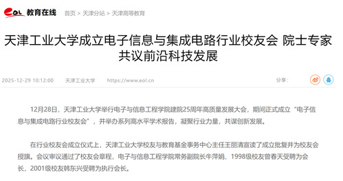 中国教育在线丨天津工业大学成立电子信息与集成电路行业校友会 院士专家共议前沿科技发展
