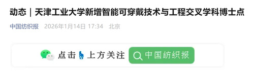 由天津工业大学纺织科学与工程学院(以下简称“天工大纺织学院”)申报的交叉学科博士学位授权点——“智能可穿戴技术与工程”,近日顺利通过教育部备案审核。这一成果既是该校国家级“双一流”学科建设的重要突破, 也为我国智能可穿戴领域高层次复合型人才培养与技术创新筑牢了学科根基。