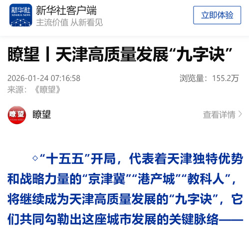 新华社客户端丨瞭望丨天津高质量发展“九字诀”