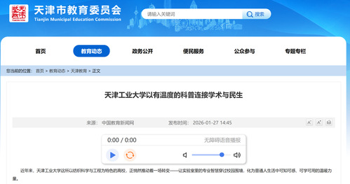 近年来,天津工业大学这所以纺织科学与工程为特色的高校,正悄然推动着一场转变——让实验室里的专业智慧穿过校园围墙,化为普通人生活中可知可感、可学可用的温暖力量。