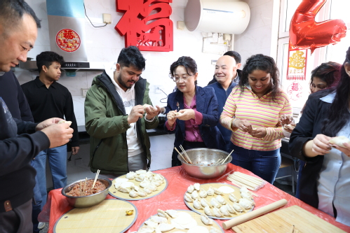 慰问的最后一站,校领导来到北苑留学生公寓,与留学生们亲切互动,一同包饺子、话新春、送祝福。现场气氛热烈,师生们共同书写福字,在笔走龙蛇间感受中华传统文化的魅力。郭滇华与留学生亲切交谈,询问假期安排和学习生活,鼓励大家多体验中国年俗,在天工大度过一个温馨难忘的春节。留学生们纷纷表示,学校的关怀让他们在校园里度过的这个中国年格外温暖、特别难忘。