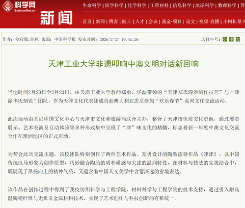 据了解,此次系列文化交流活动是该校对外文化传播工作的重要实践,使天工技艺、津派文化的影响力跨越山海、远播海外,也让澳洲民众通过非遗技艺感知天工、了解天津、读懂中国,进一步加深了中澳两国人民之间的友谊。