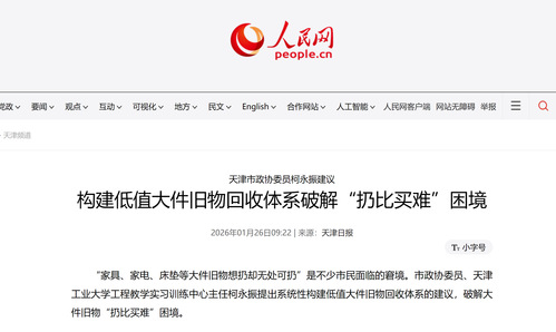 “家具、家电、床垫等大件旧物想扔却无处可扔”是不少市民面临的窘境。市政协委员、天津工业大学工程教学实习训练中心主任柯永振提出系统性构建低值大件旧物回收体系的建议,破解大件旧物“扔比买难”困境。