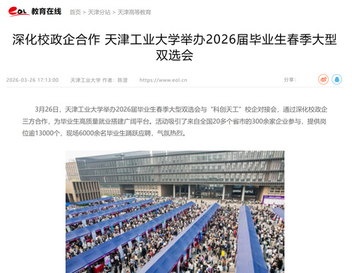 深化校政企合作 天津工业大学举办2026届毕业生春季大型双选会