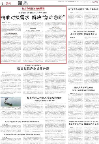 树立和践行正确政绩观学习教育开展以来,全市党员干部从理论上和实践上深刻认识政绩观对党和国家事业发展的重要性,以对党和人民高度负责的态度,把造福人民作为一切工作的出发点和落脚点,在着力解决食品安全、金融保障、教育就业等人民群众急难愁盼问题的过程中,增强树立和践行正确政绩观的思想自觉和行动自觉。