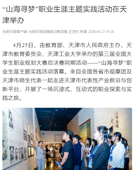 4月25日,由教育部、天津市人民政府主办,天津市教育委员会、天津工业大学承办的第三届全国大学生职业规划大赛总决赛同期活动——“山海寻梦”职业生涯主题实践活动落幕。来自全国各省市观摩团及天津市师生代表一起走进天津市代表性产业前沿与创新平台,开展了一场沉浸式、互动式的职业探索与实践之旅。